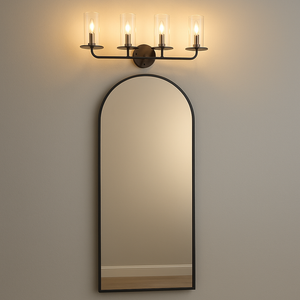 The Aura vanity features a two-toned finish that will add the perfect splash to your bathroom. Regardless of the style of your home, this Aura bathroom vanity light fixtures will be a great addition. This Vanity has a Matte Black and Brushed Nickel Finish with Dimensions: 13” H x 37” W. The Bulb Base is E12 Candle.
