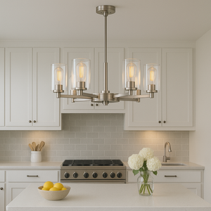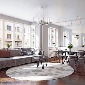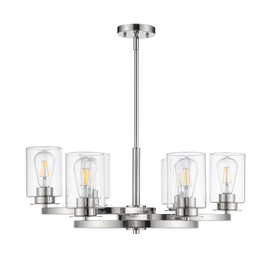 The Jonna chandelier design is inspired by the Borromean rings (3 interlocking circles) adapted from a 13th-century. This modern chandelier features multi lights with clear shades, softly sending out light for even illumination to your home areas. It is perfect for a dining room, kitchen island, or bedroom.
