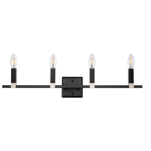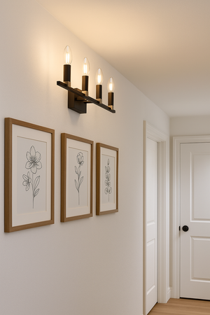 This clean modern design is suitable for transitional to contemporary homes. The black and nickel finishes and the candelabra style lights continue the elegant look. This wall light is an excellent idea for your bathroom mirror or bedroom, powder room, living room, dressing table, doorway or entryway, corridor, foyer, or bar coffee shop.