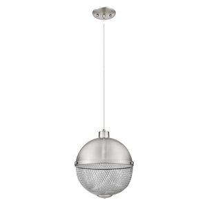 The 1-light single Parma indoor hanging mesh light pendant in brushed nickel finish provides abundant lighting to your home while adding style and interest. The half and half of solid and mesh will create a modern and unique look for your living room, bedroom, and kitchen. With a simple yet sophisticated design, this hanging light fixture will be the first attention whenever your guests visit your house.