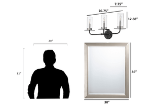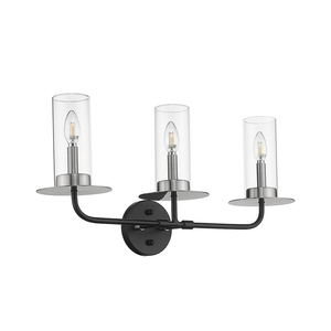 The Aura 3-light bathroom vanity light with Matte Black and Brushed Nickel's clean lines and clear glass gives it a modern feel. With 3 E12 Candelabra bulbs, the chandelier provides the perfect amount of light for any bathroom.