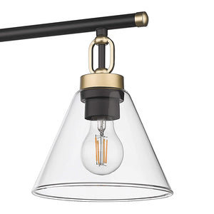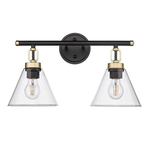 This 2-light vanity has the ability to blend in with any type of décor. Brighten your bathroom mirror in a clean, contemporary design with this fixture. It's made from steel and features champagne gold rings connected with the matte black bulb bases and horizontal arm that enhances the elegant look.
