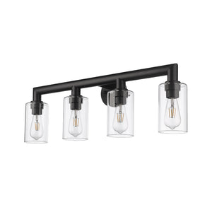 This vanity light is a built-in sturdy metal arm with a matte black finish and clear cylinder glass shades. The sturdy silhouette in a matte finish creates a more exquisite and luxurious feeling for your home lighting. This mounted wall light can be installed upward and downward, which perfectly matches your bathroom, mirror cabinets, vanity set, etc.