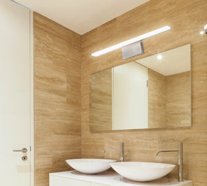 The Zenon LED strip vanities have a modern, minimalist look. They feature brushed nickel finishes and the LED strips are white in color. This design is suitable for all home decor's styles. The light direction is also adjustable by repositioning the light bar.