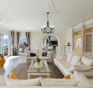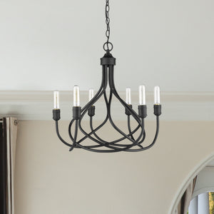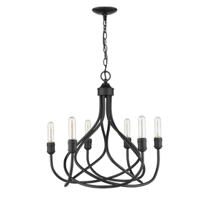 The TARA features a retro-industrial design style. Its open-air design showcases the illumination from the bulb, adding a trendy appeal. This black candelabra chandelier features six clear snub tip bulbs providing the perfect brightness and style you want for your home.