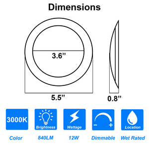Introducing our versatile LED disk light, the perfect lighting solution for any space! This sleek 5-inch LED flush mount ceiling light emits at 3000K, creating a warm and inviting atmosphere in any indoor or outdoor area. Perfect for patios, garages, kitchens, and living rooms, these lights are energy-efficient and durable, providing a long-lasting, stylish lighting solution. Upgrade your space with our disc light and enjoy the perfect balance of form and function.