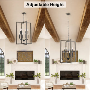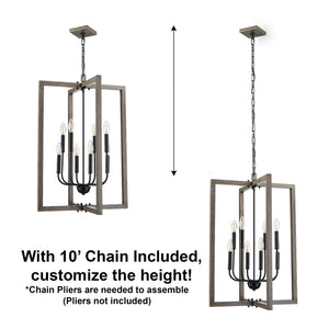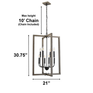 Elevate your space with our captivating rectangle chandelier, where modern design meets rustic elegance. Crafted with a warm wooden frame, its open cage structure exudes a farmhouse charm that beautifully complements a variety of interior styles. Illuminate your home with a touch of sophistication and nature-inspired grace.