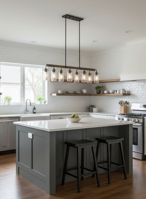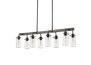 The Vivio 8-Light Roxton Island is a beautiful centerpiece for any kitchen. It features a Matte Black with Wood Style Accent finish. This modern linear chandelier is ideal for kitchen islands and will make your home more elegant and stylish.