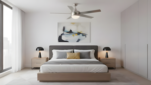 The "SUN505 NK5SV/WL" 52-inch modern ceiling fan is a sleekly designed modern & contemporary silver ceiling fan. It has steel housing clean lines with brushed nickel finish to lighten up your indoor spaces. This ceiling fan will complement your style from farmhouse bedrooms to modern home offices.
