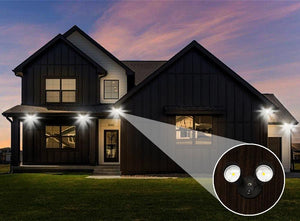 360° ADJUSTABLE DUAL LIGHT HEADS - Adjustable heads provide a customizable coverage area. Perfect led outdoor security lights for dark, secluded areas, walkways, entryway areas.