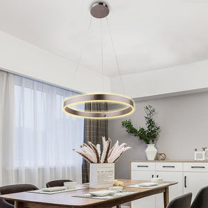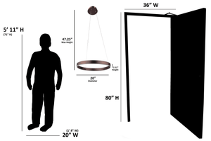 AVA is a new LED ring chandelier design by Vivio. Its illuminating ring brings a modern feel to any space, while its sleek finish will give an area a sense of elegance. It features a Coffee Brown Plate and Coffee Brown Base. The dimensions are (HxW) 47.25”H x 23.75”W.