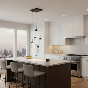 The Pixi illuminated hanging light pendant featured the matte black finish and bubble LED lights. It provides an ample amount of extraordinary lighting in your special space. This illuminated glass cube pendant is constructed from high-quality. The pendant is a stylish light that can be shined by itself as an accent piece, or grouped together to light your stairwell, kitchen island, bar, or pool table.