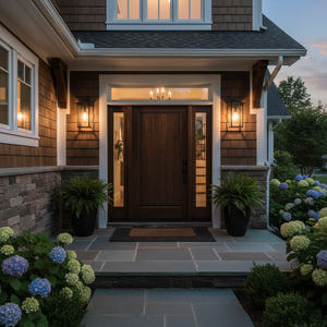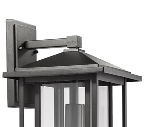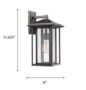 The Vivio 1-Light Medium Coach Light features a matte black finish which gives a warm feel to your home. The dimensions are 21” H x 11" W with an E26 base. Whether it is transitional or contemporary, this outdoor wall lights can easily match many home exteriors with an architectural feel.