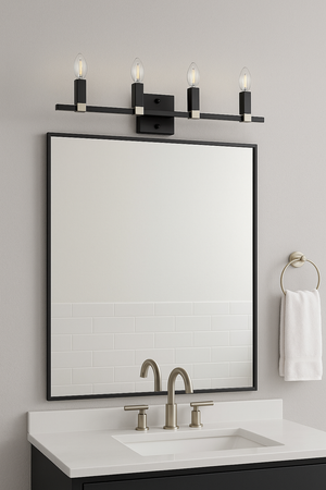 This clean modern design is suitable for transitional to contemporary homes. The black and nickel finishes and the candelabra style lights continue the elegant look. This wall light is an excellent idea for your bathroom mirror or bedroom, powder room, living room, dressing table, doorway or entryway, corridor, foyer, or bar coffee shop.