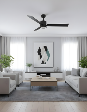 Elevate your home’s atmosphere with the Neo 52" LED Ceiling Fan. Finished in a striking matte black, this three-blade fixture pairs minimalist design with high-performance cooling. The Neo features integrated LED technology with three selectable color temperatures (3000K, 4000K, and 5000K), allowing you to shift from warm relaxation to crisp daylight at the touch of its included WC6 wall control. It’s the perfect blend of architectural style and whisper-quiet efficiency.