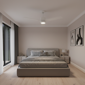 The "SUN352 WH3WH(WC-6-WH)(SELECT)" is a 52 inch white modern ceiling fan with LED light and wall control, or you can control ceiling fan through your phone (Shop bluetooth wireless control receiver here). This ceiling fan will complement your style from farmhouse bedrooms to modern home offices. Use the included wall control to easily turn the fan’s light on or off, and dim the light.