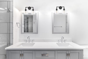 This Milla Vanity features a matte black finish and clear glass shades which are ideal for any contemporary & modern setting. This 2-light vanity light fixtures can be mounted up or down and looks great right above the bathroom mirror or featured on the wall.