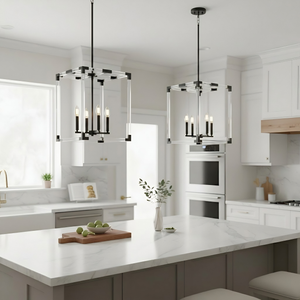 Enhance your space with the Neva 4-Light Acrylic Open Cage Square Pendant, featuring a contemporary open cage design that maximizes light diffusion. Available in sophisticated matte black and luxurious matte gold finishes, this pendant effortlessly elevates the ambiance of dining areas, kitchens, or entryways, adding a stylish and warm touch to your decor.