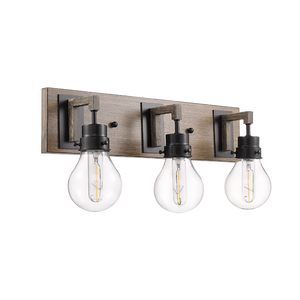 The Vivio Roxton 3-Light features a Matte Black with Wood Style Accent finish which gives a warm feel to your home. Whether it is transitional or contemporary, this is perfect bathroom vanity light fixtures.