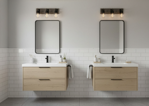The Vivio Roxton 3-Light features a Matte Black with Wood Style Accent finish which gives a warm feel to your home. Whether it is transitional or contemporary, this is perfect bathroom vanity light fixtures.